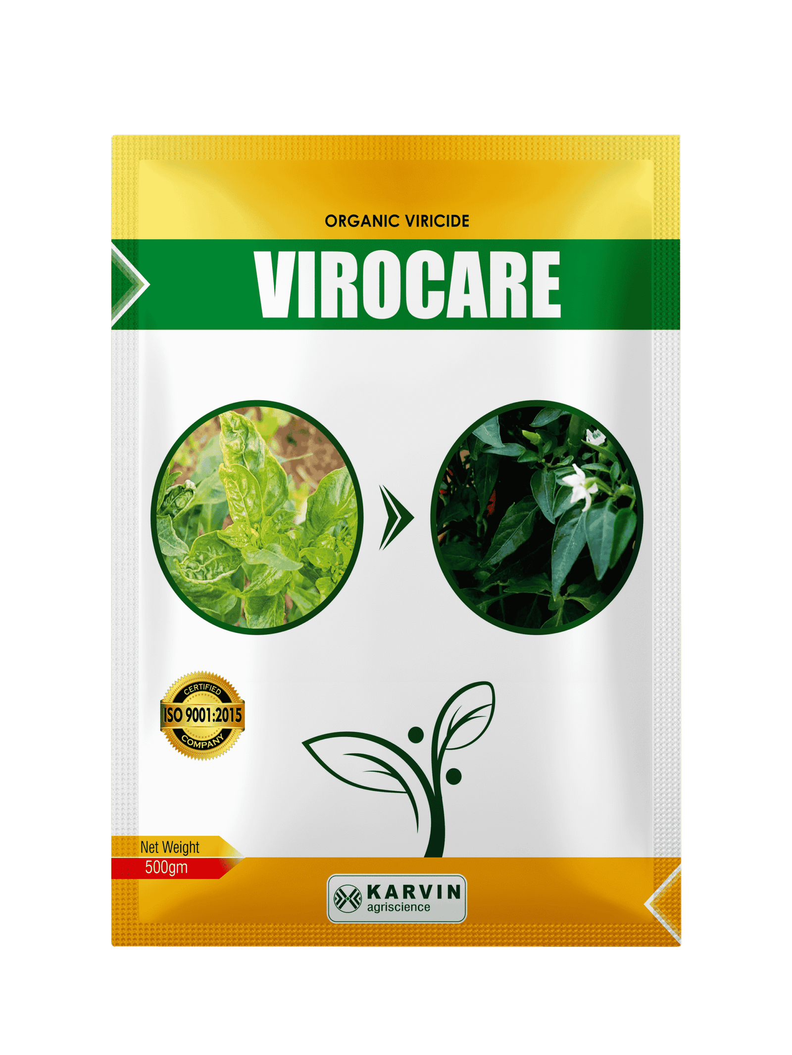 VIROCARE is a novel biological organic anti-virus product which gives protection against all types of plant viral diseases in crops like chilly, papaya, tomato, pomegranate, and other vegetables.